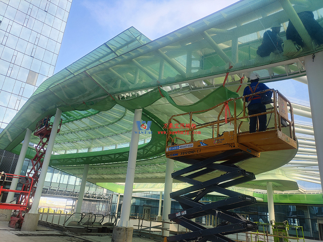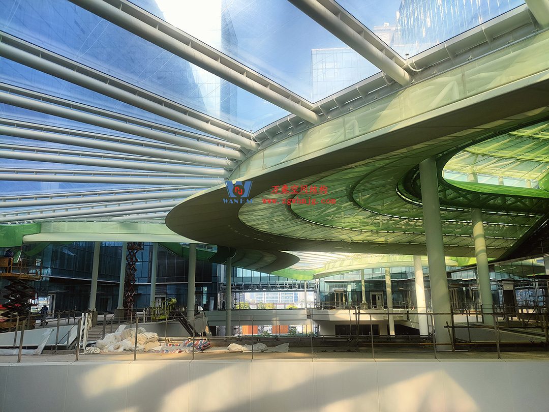 博多森谷項(xiàng)目中庭鋼膜結(jié)構(gòu)工程位于余杭區(qū)良渚板塊,地處杭州城北,良渚未來核心區(qū),城西科創(chuàng)大走廊輻射圈。該項(xiàng)目用鋼量約689噸,ETFE+網(wǎng)格織物膜展開面積12000平方米。