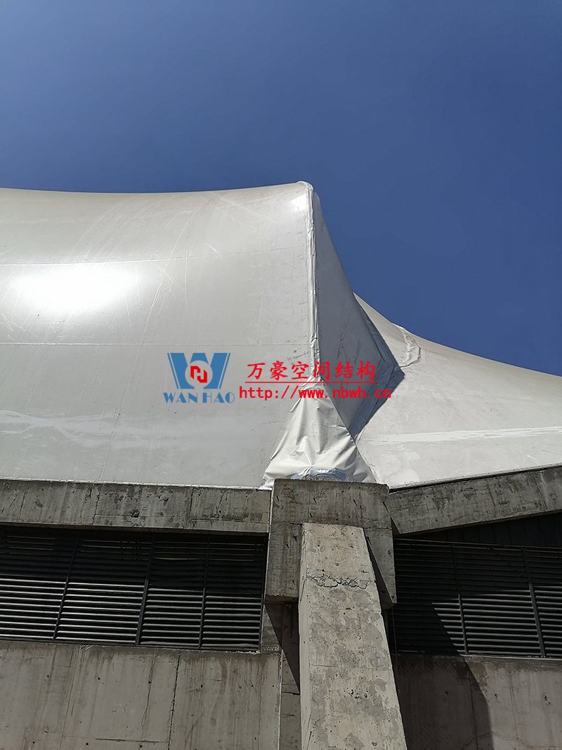 本項目膜結構罩棚鋼結構高度40米,跨度115米,膜結構展開面積25000平米。