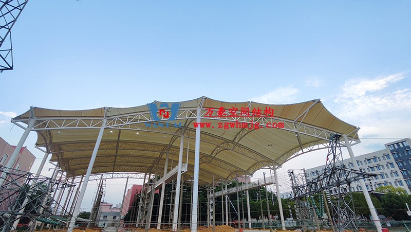 國網江西省電力有限公司培訓中心實訓基地改造膜結構項目位于江西省南昌市經濟技術開發去海棠南路268號,該項目用鋼量約525噸,PTFE膜結構展開面積約5200平米。