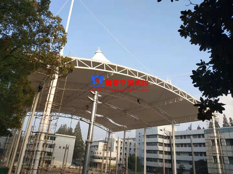 安慶培訓基地大棚膜結構工程位于安徽省安慶市電力培訓基地內,該工程用鋼量150噸,膜結構展開面積3000平米。