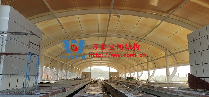 清遠磁懸浮項目蓮湖車站鋼-膜結構工程位于廣東省清遠市,用鋼量200噸,膜結構展開面積5200平米,由寧波萬豪空間結構工程有限公司承建。