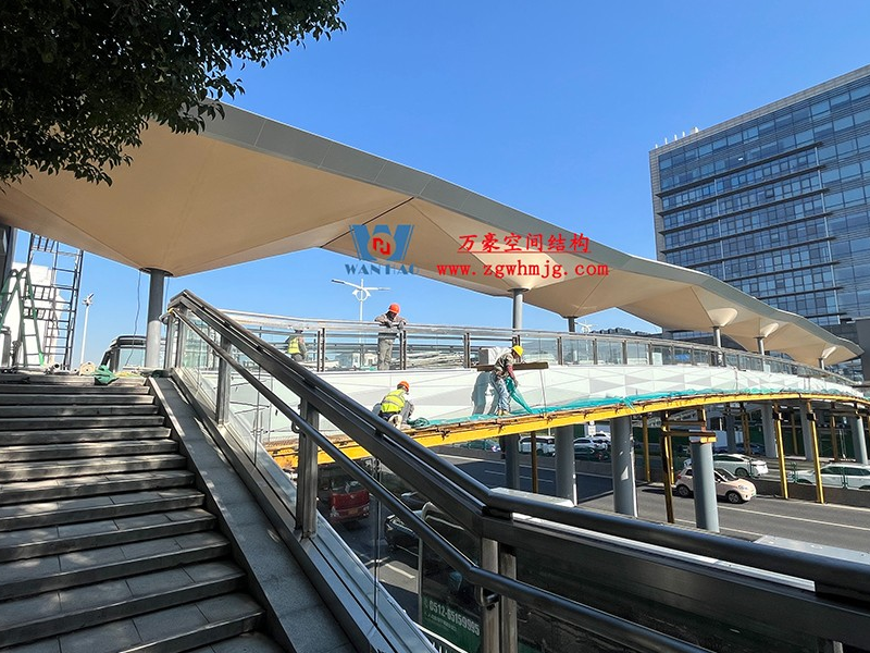蘇州東環(huán)路人行天橋ptfe膜結(jié)構(gòu)改造工程位于江蘇省蘇州市蘇州工業(yè)園內(nèi),該項目PTFE膜結(jié)構(gòu)展開面積2000平米。