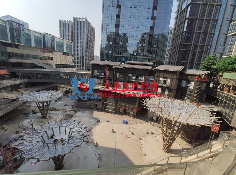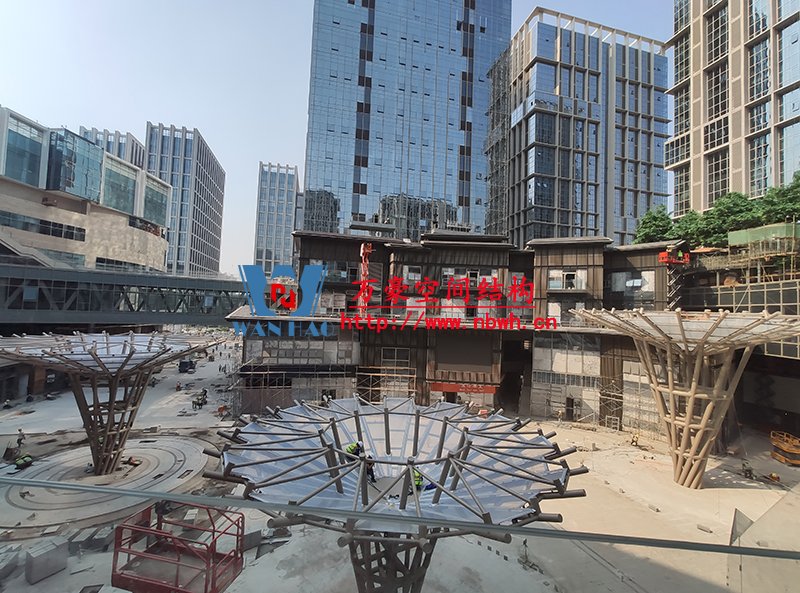 東南智匯城7#地塊傘狀ETFE膜結構工程位于河北省石家莊市東南智匯城,由寧波萬豪空間結構工程有限公司承建。