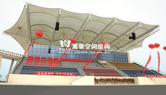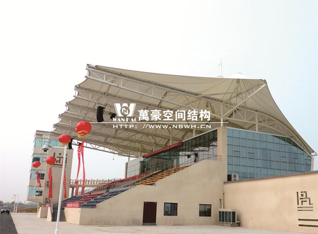 南昌瑤湖國際水上運(yùn)動(dòng)中心膜結(jié)構(gòu)看臺整體工程呈骨架式單挑懸臂梁結(jié)構(gòu),縱向跨度達(dá)到20米,總長度約52米,每檔間距為8.5米,充分體了膜結(jié)構(gòu)具有大跨度,易施工的結(jié)構(gòu)特點(diǎn),同時(shí)它的經(jīng)濟(jì)實(shí)用性和視覺美觀性也得到了完美的體現(xiàn)。