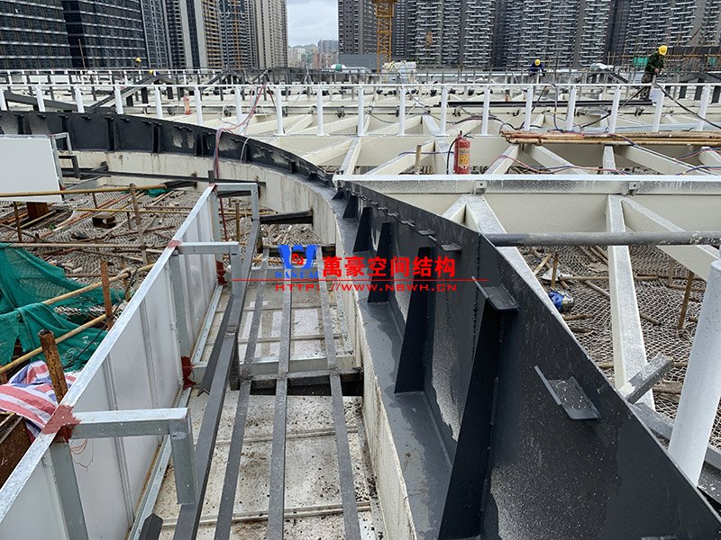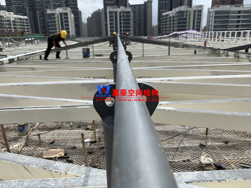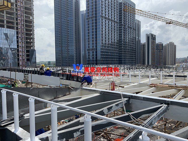 紅山六九七九商業中心項目幕墻工程Ⅱ標段膜結構鋼結構工程位于廣東省深圳市龍華區,此工程用鋼量300噸,膜結構展開面積5000平米,由寧波萬豪空間結構工程有限公司承建。 該工程一共分為四個單體,分別為YP1、YP2、YP3、YP4。目前YP3二次構件安裝完成90%,YP4二次構件準備開始動工。 期待整個工程的完工,來領略它獨特的風采。