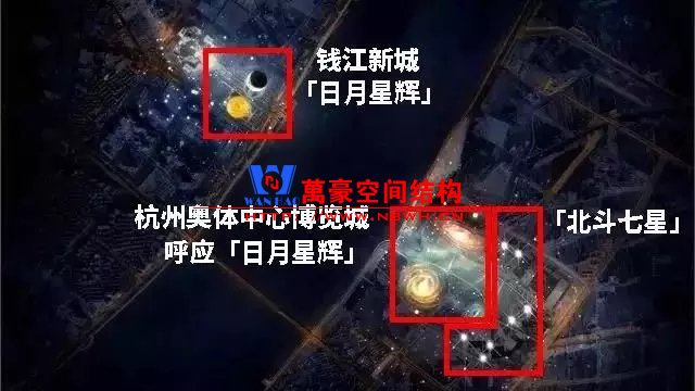 按照官方的說辭,該項目整體規(guī)劃采用了中國傳統(tǒng)的「北斗七星」意向,與隔著錢塘江的錢江新城「日月同輝」意向交相輝映。