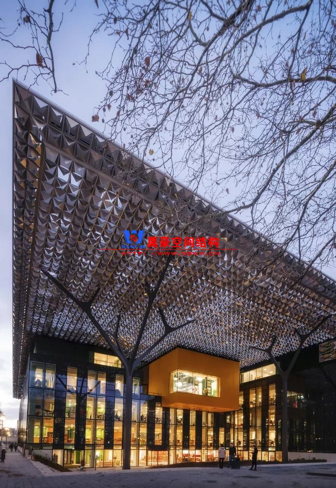 裙房之間的天幕為樹形柱支承