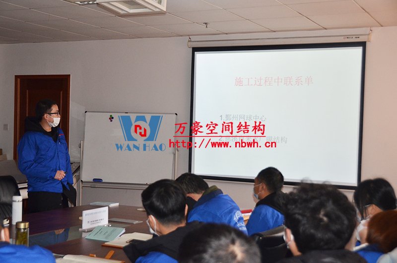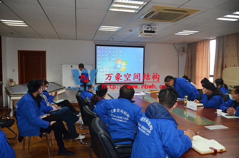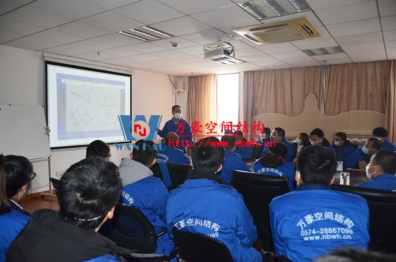膜結(jié)構(gòu)專業(yè)知識(shí)宣講會(huì)在萬(wàn)豪空間結(jié)構(gòu)公司會(huì)議室進(jìn)行,培訓(xùn)內(nèi)容由萬(wàn)豪總經(jīng)理張總及工程部各項(xiàng)目經(jīng)理進(jìn)行主講。