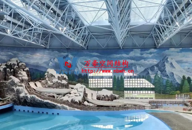 水雪綜合體用鋼量達(dá)到2.4萬噸,雪世界最長滑雪道有320米,垂直落差達(dá)60米,相當(dāng)于20層樓高。