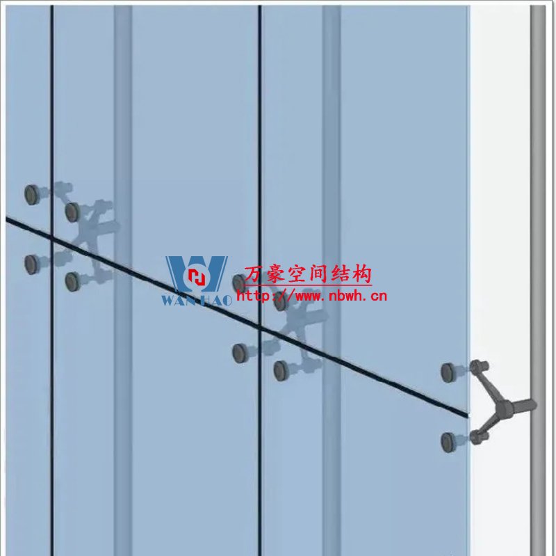 點式幕墻比較好理解,玻璃與主體結構是通過爪件點式連接,主體結構有鋼立柱、拉索、桁架等。點式幕墻的價格在這幾種形式里算最貴的,大概在1600元/㎡。