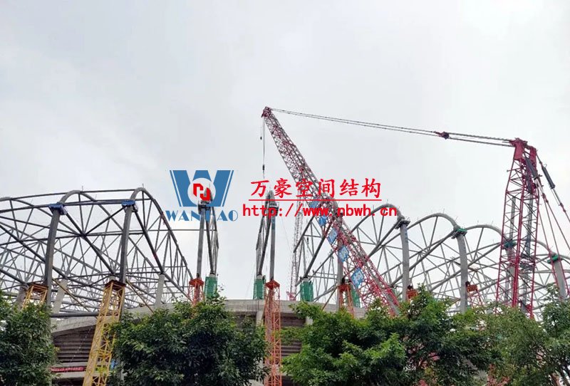 8月18日,隨著最后一榀環向桁架吊裝完成,重達14000噸的罩棚鋼結構順利封頂,重慶龍興足球場項目鋼結構全部完成,創2023年亞洲杯新建場館建設速度第一。這是重慶市打造的首座大型專業足球場,也是國內在建的規模最大專業足球場之一,其設計取意為“火鳳凰”。