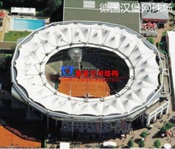 德國漢堡網球場膜結構展開面積約10000平方米,采用PVC(PVDF面層)膜材。屋頂是可開合式膜結構,這種屋頂能確保在任何季節舉行網球比賽,避免重要賽事因天氣原因中斷或延遲。
