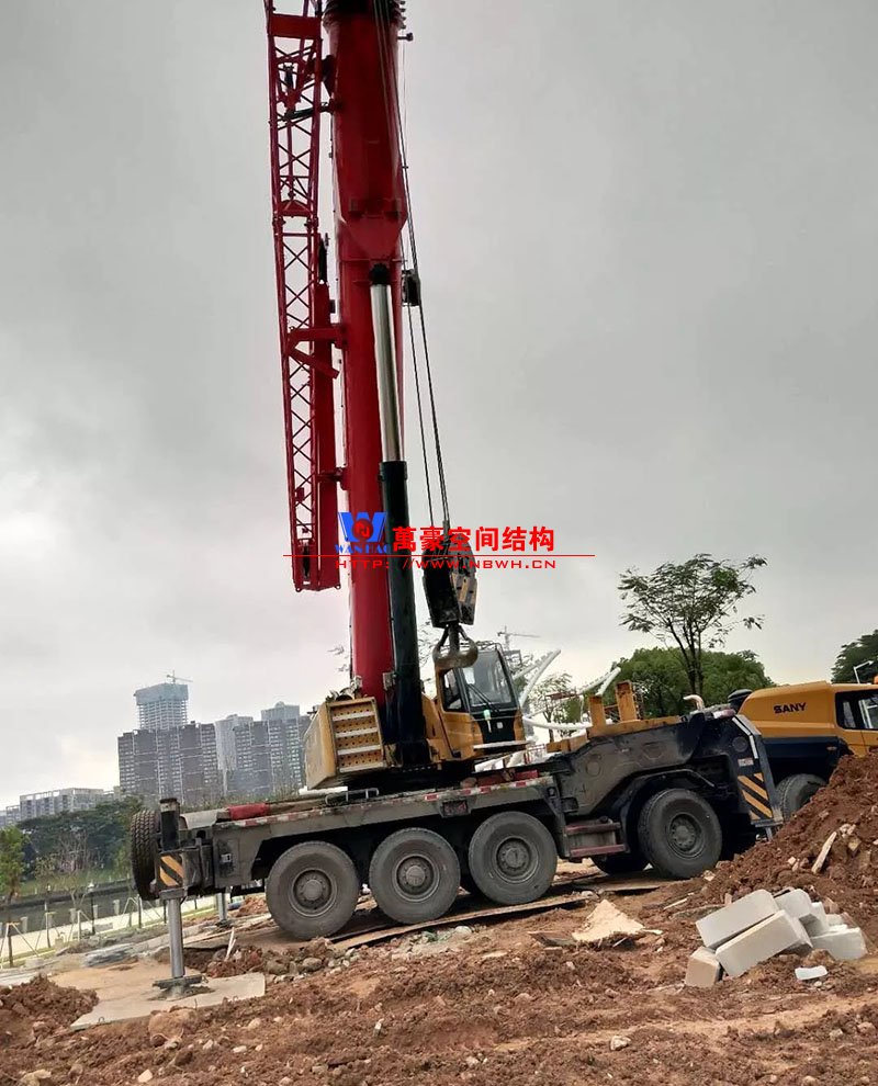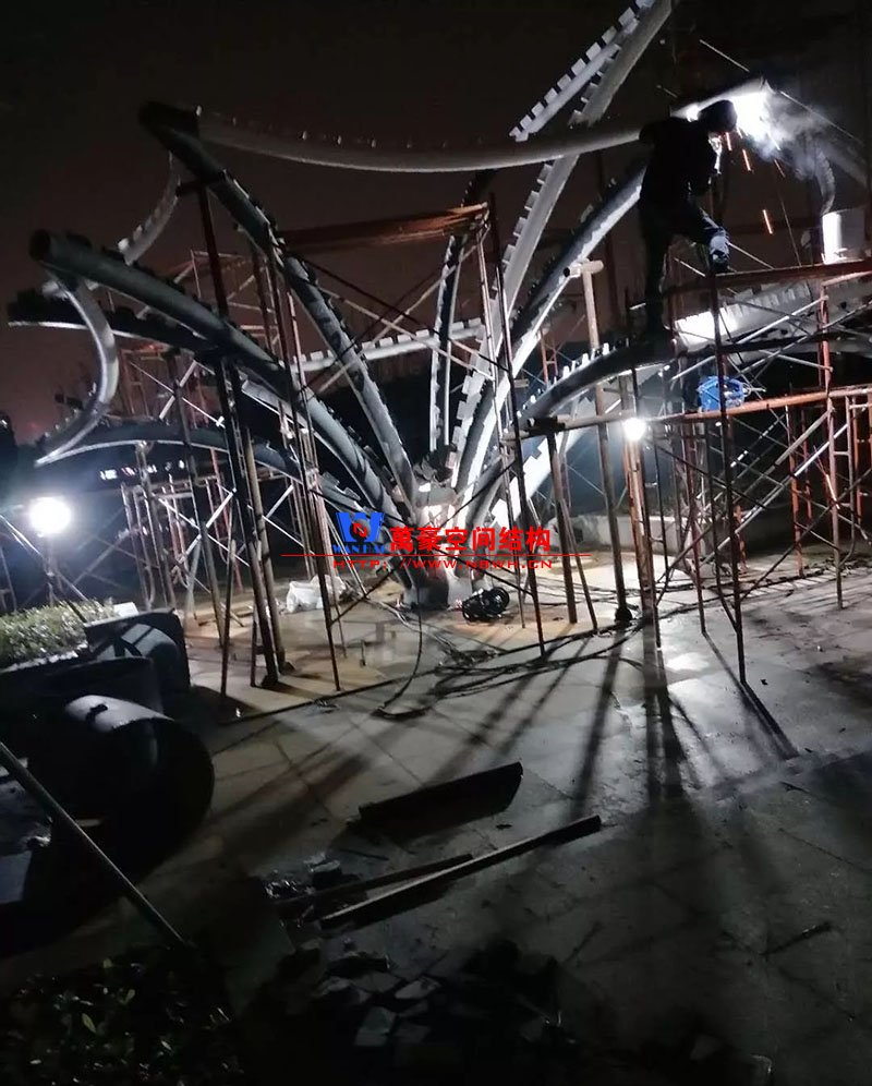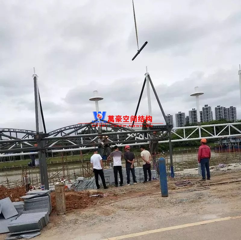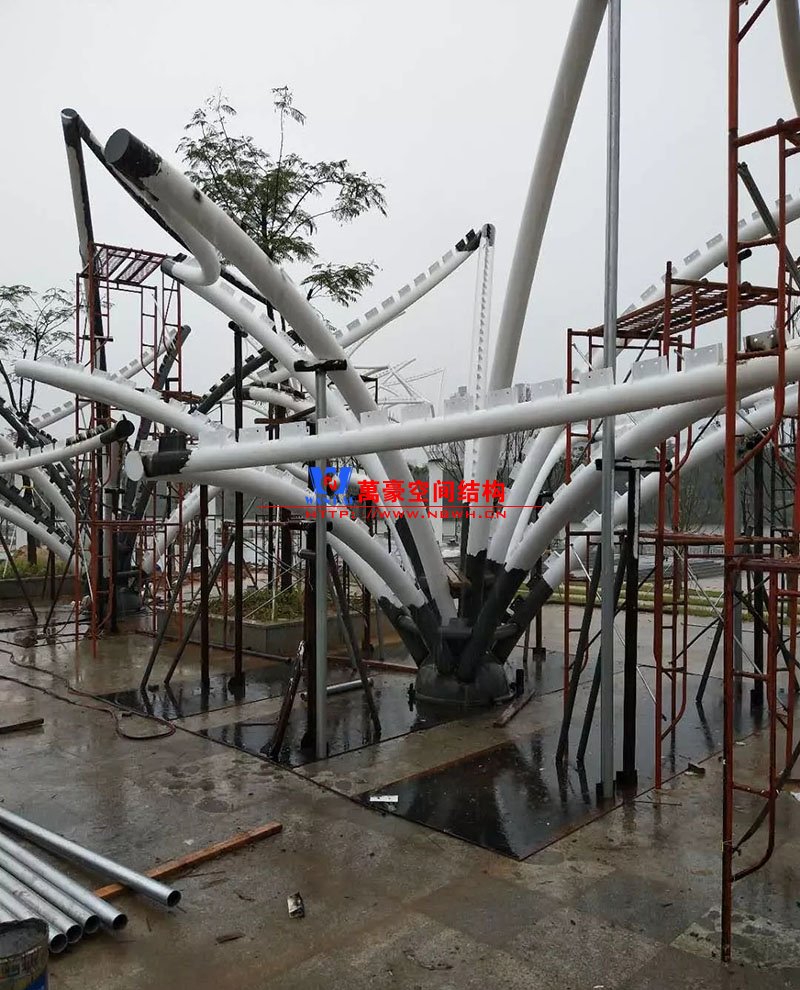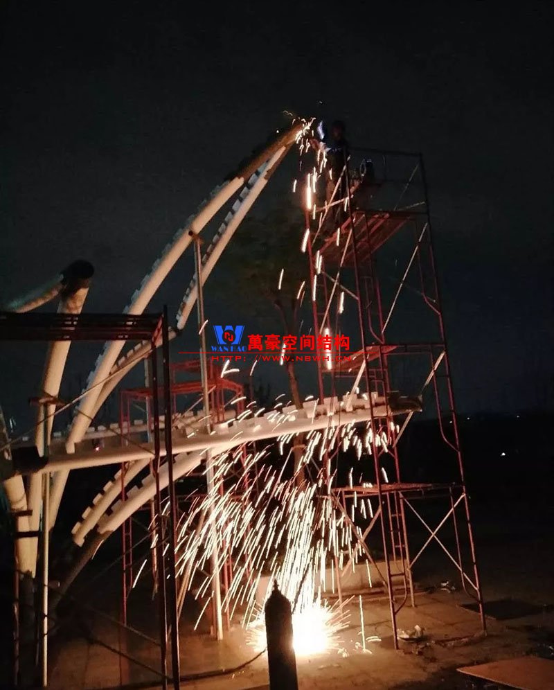 鋼構安裝初步完成,效果初現,膜結構開始安裝。