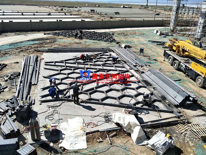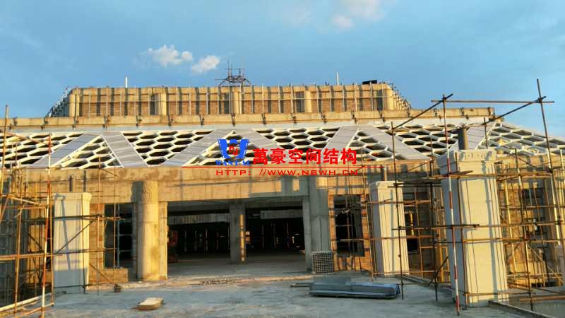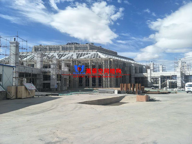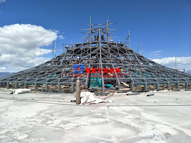 目前,觀光塔鋼膜結構項目架子已搭建完畢,接下來要做的是防護工作。綜合辦公樓鋼膜結構項目穹頂鋼構預計月底之前完成;斜屋面已做好三個面,其中兩個面已做完油漆,預計七月中旬斜屋面鋼構全部完成。