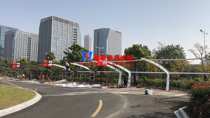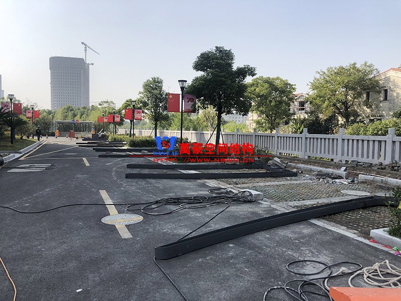 太屺3#地塊商務樓(慈溪市國力土地資源投資開發有限公司)地面膜結構車棚項目位于浙江省寧波市慈溪市,該項目膜結構展開面積2000平米,用鋼量50噸,由寧波萬豪空間結構工程有限公司承建。