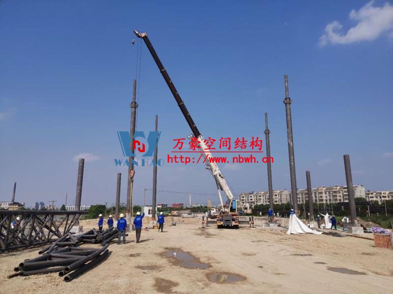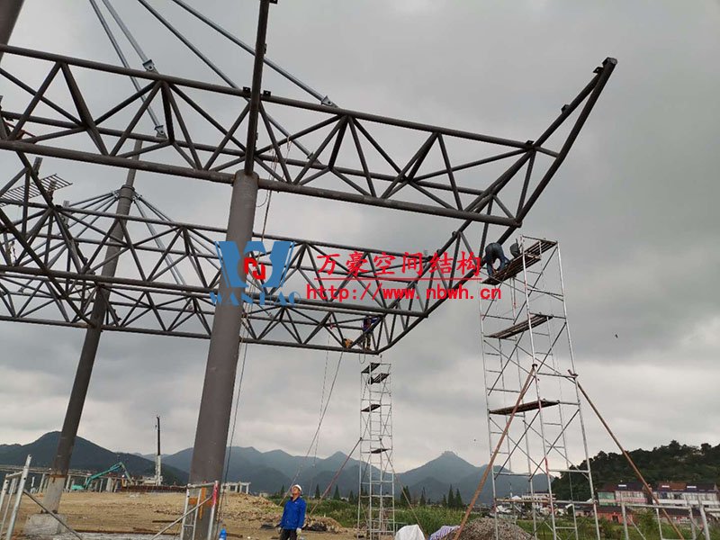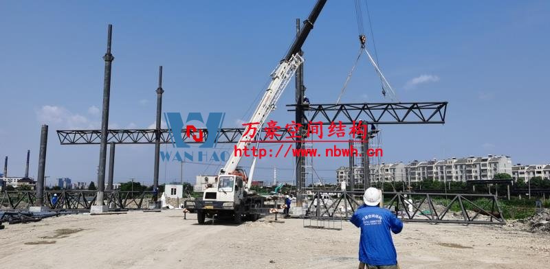 紹興福全高速收費(fèi)站頂棚工程用鋼量60噸,由寧波萬豪空間結(jié)構(gòu)工程有限公司加工和安裝。 目前,項(xiàng)目鋼結(jié)構(gòu)安裝完成。 期待整個(gè)工程的完工,來領(lǐng)略它別致的風(fēng)采。
