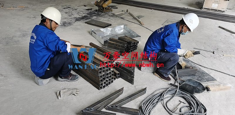 項目區域劃分為A區,B區,C區,目前C區正在施工,主要是柱子及桁架吊裝;A區也在施工,主要是水槽托架及焊縫涂刷底漆;B區暫停施工。