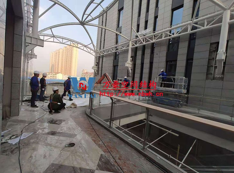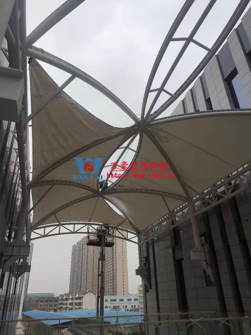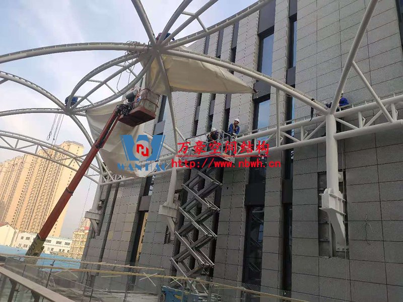 目前,該膜結(jié)構(gòu)工程的鋼結(jié)構(gòu)工程部分已完成并經(jīng)初步驗收,膜結(jié)構(gòu)進入安裝階段。
