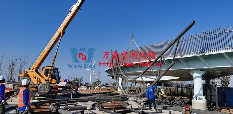 威海經貿交流中心工程-大貝殼項目位于山東威海東部濱海新城,膜結構展開面積3000平米,用鋼量300噸,由寧波萬豪空間結構工程有限公司承建。 項目造型為貝殼造型,結構復雜,施工難度非常大,幾乎每一根構件都需獨立放樣定位。膜結構則是采用ETFE與PTFE多種膜材組合的方式,更大限度的展現了膜結構在商業領域的應用。 目前,項目進入鋼結構安裝階段。 期待整個工程的完工,來領略它別致的風采。