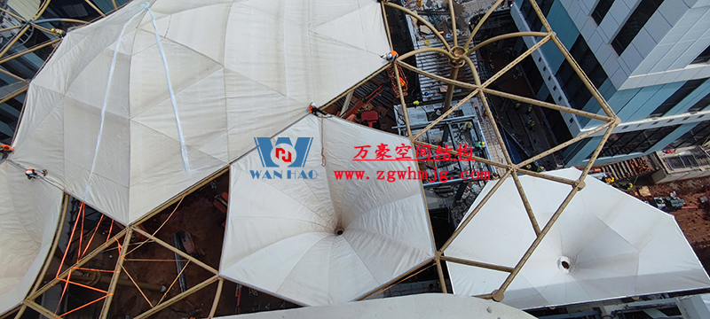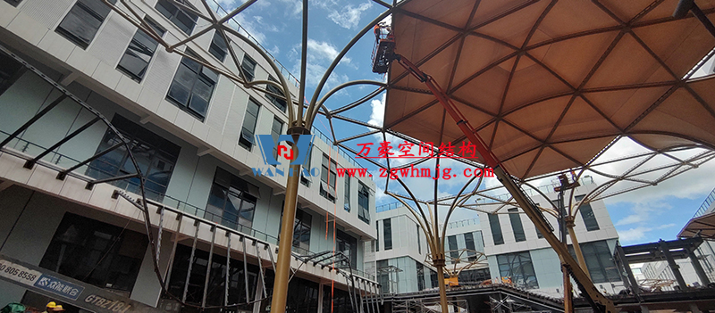 東盟特色商品匯聚中心膜鋼構工程位于廣西省南寧市良慶區利華路23號中新南寧國際物流園內,該項目用鋼量260噸,ptfe膜結構展開面積3500平米,ETFE膜結構展開面積1500平米。