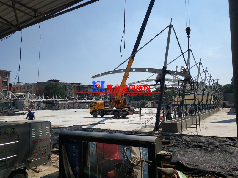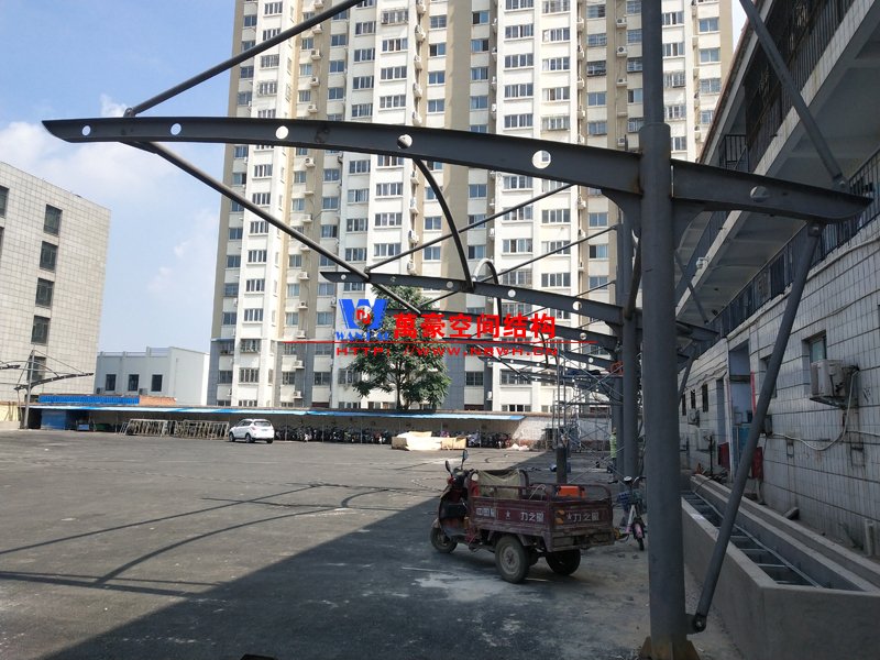 安陽市北廠街、彰德路公交充電樁雨棚膜結構接近尾聲